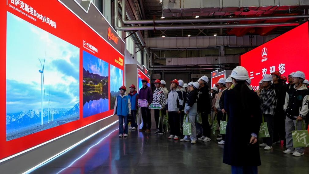 实践团队首先走进三一重工智能制造车间,开启产业前沿探索之行。在工作人员引导下,师生依次参观了智能生产车间、新能源装备展区与研发创新中心,近距离观摩大型挖掘机、风电整机等核心装备的生产流程。通过现场讲解与图文展示,师生深入了解了各种先进技术在装备制造中的广泛应用,以及三一重工在新能源装备研发与清洁能源生产等方面的创新成果。对产业一线的直观体验,为学生架起了从课堂理论通向产业实践的桥梁。