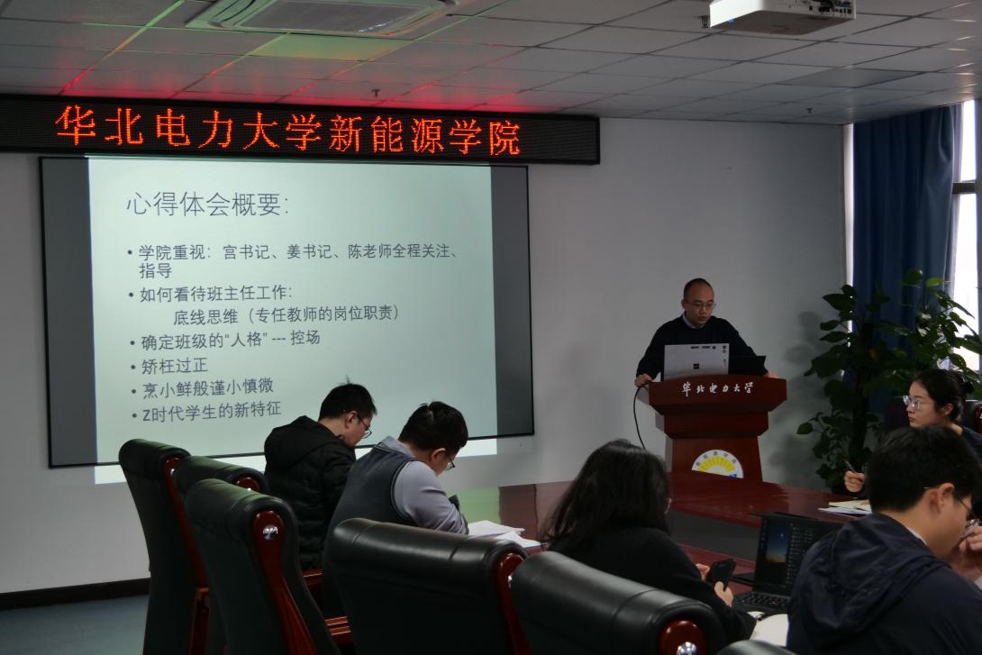 会上,姜良杰布置了新学期班主任工作,并提出了明确工作要求。新能源学院将持续强化班主任队伍建设,激励全体班主任以名师为标杆,以责任为底色,立足新能源专业特色,为国家“双碳”战略培育更多有理想、有本领、有担当的时代新人,为建设能源电力特色世界一流大学添砖加瓦。